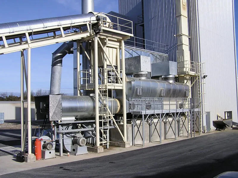 - Dust removal by cyclone, exhaust filter or gas scrubber